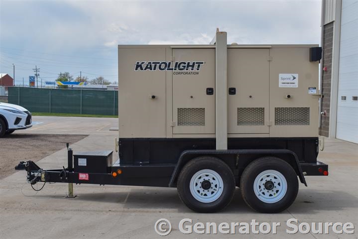 Description: Katolight 50 kW Portable Diesel Generator Model: D60FDJ4T2 Serial# 144715-0407 Year 2007, 378 Hours, 120/240 Volt, Single Phase Sound Attenuated Enclosure on Trailer